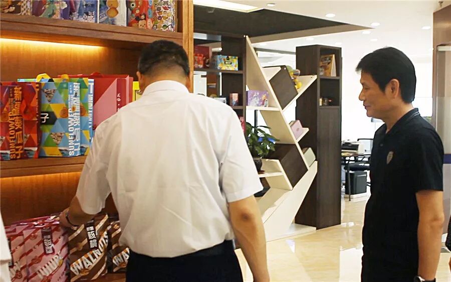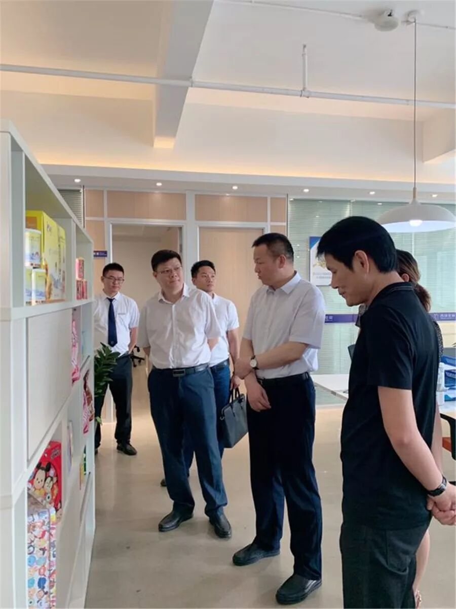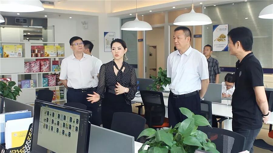一行领导先在蒋董事长、周总经理的陪同下,参观了电商部门的运作,从产品的摄影到产品在平台上架,以及产品的运营及推广整个流程。领导们了解了电商部门运营模式后,一起到会议室交流座谈。