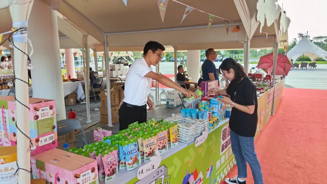 不仅如此,活动会场还设立了许多集市摊位,各种特色特产,莞货优品陈列在此。西域金葵农业发展有限公司作为本地优秀企业应邀参与本次消费节,为广大用户带来葵庄瓜子、粤疆冬枣、粤疆坚果、粤疆手信、天润浓缩纯牛奶等一些列独具特色的原生态产品,丰富多样的商品吸引大量客户驻足品尝、购买。